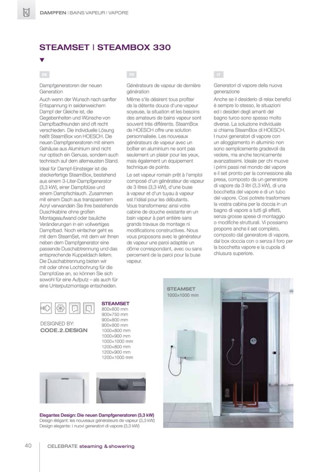 Design élégant: les nouveaux générateurs de vapeur (3,3 kW)