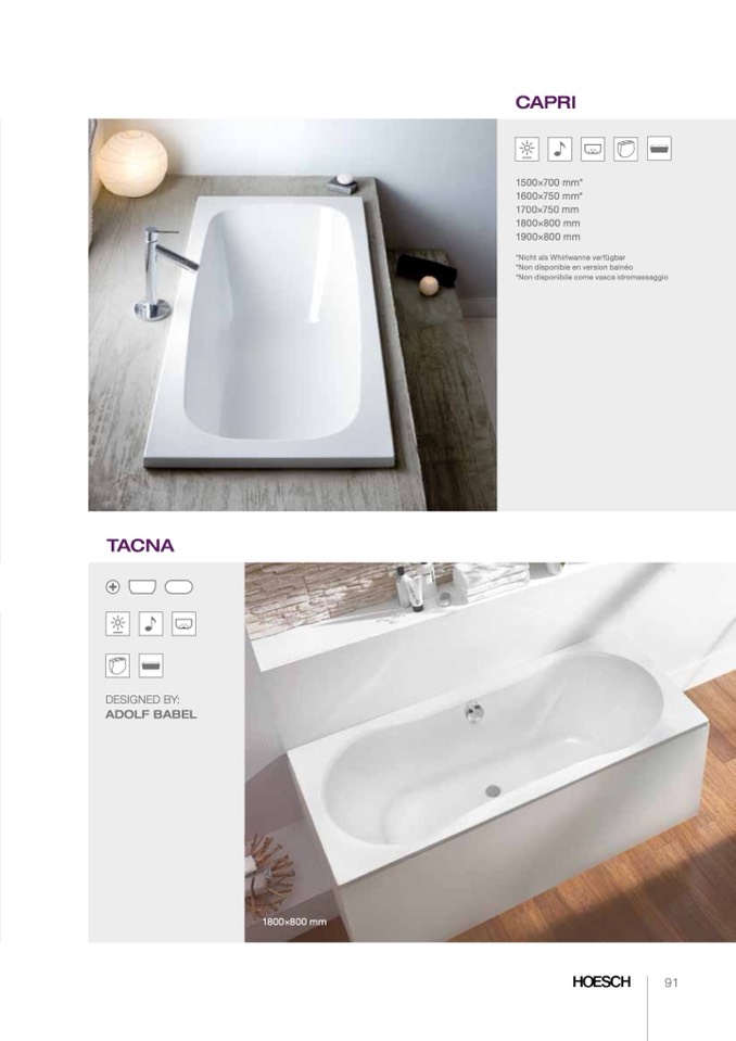 *Nicht als Whirlwanne verfügbar
