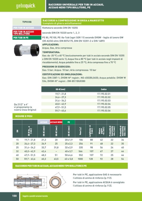 e DIN EN 10220 serie 1); Acqua fino a 80 °C (per tubi in acciaio negli impianti di