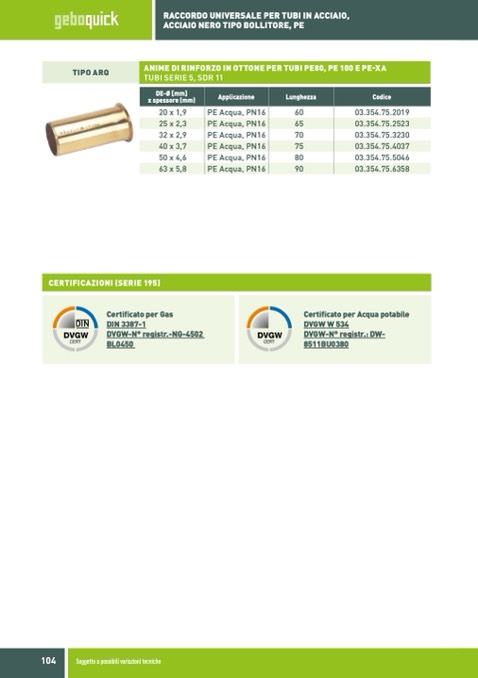 ANIME DI RINFORZO IN OTTONE PER TUBI PE80, PE 100 E PE-XA