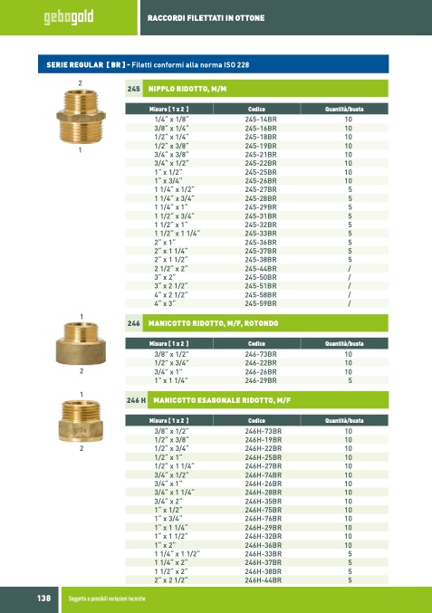 SERIE REGULAR [ BR ] - Filetti conformi alla norma ISO 228