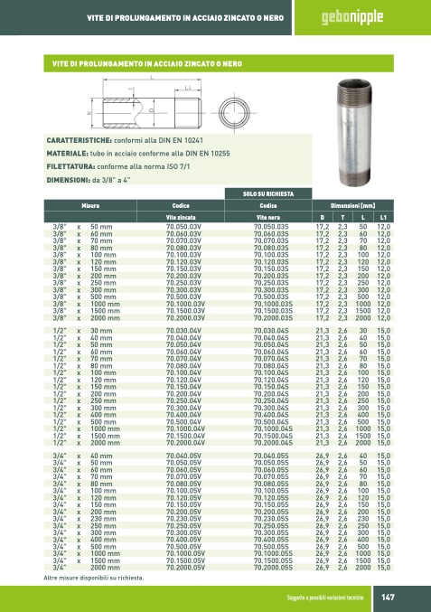 CARATTERISTICHE: conformi alla DIN EN 10241