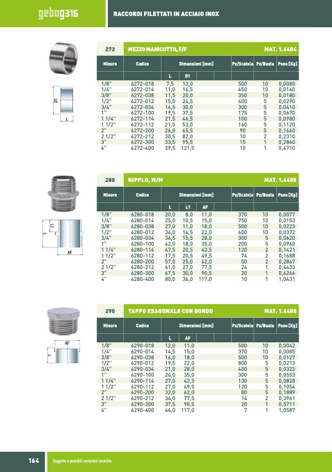 RACCORDI FILETTATI IN ACCIAIO INOX
