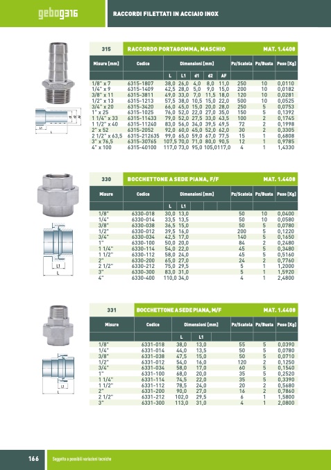 RACCORDI FILETTATI IN ACCIAIO INOX