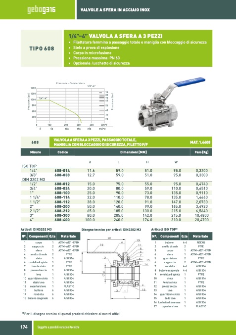 VALVOLA A SFERA A 3 PEZZI, PASSAGGIO TOTALE,