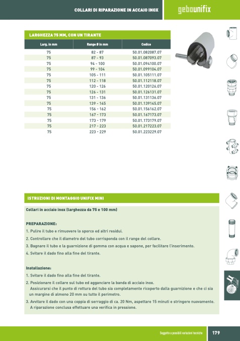 Collari in acciaio inox (larghezza da 75 e 100 mm)