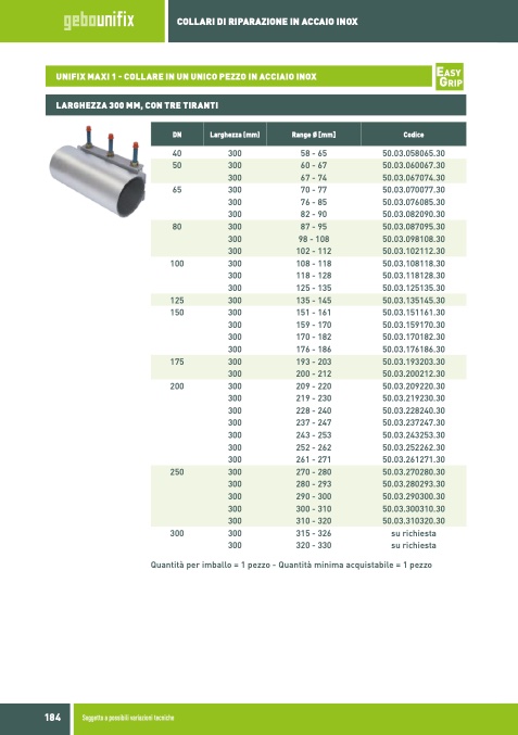 UNIFIX MAXI 1 - COLLARE IN UN UNICO PEZZO IN ACCIAIO INOX