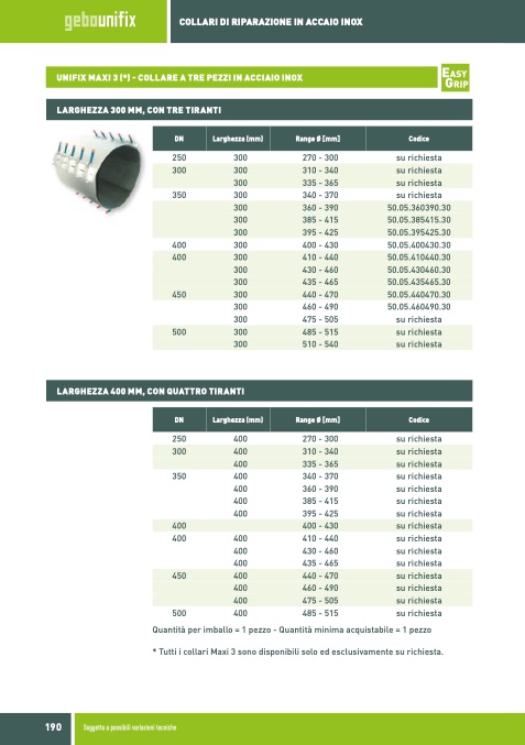 UNIFIX MAXI 3 (*) - COLLARE A TRE PEZZI IN ACCIAIO INOX