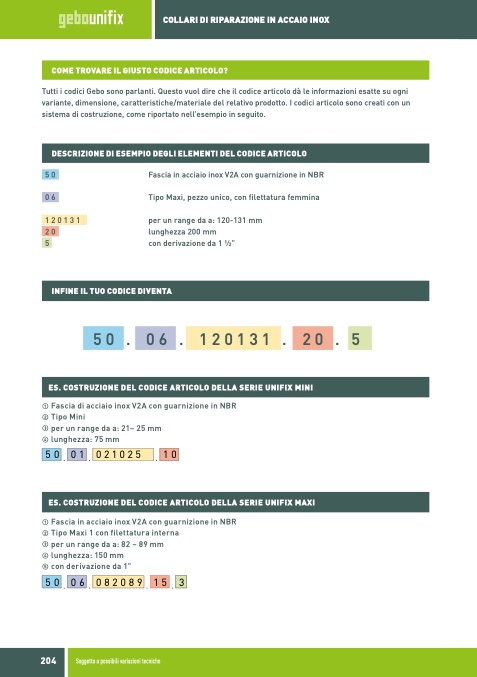 Tutti i codici Gebo sono parlanti. Questo vuol dire che il codice articolo dà le informazioni esatte su ogni