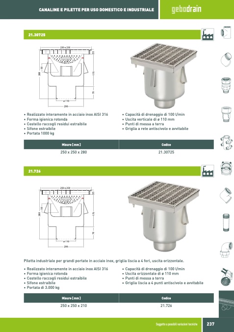 CANALINE E PILETTE PER USO DOMESTICO E INDUSTRIALE
