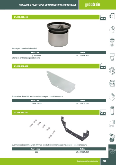 Sifone per canaline industriali.