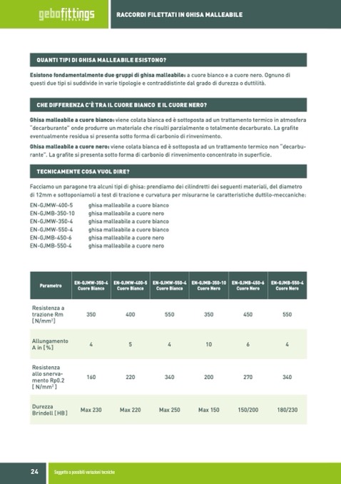 Esistono fondamentalmente due gruppi di ghisa malleabile: a cuore bianco e a cuore nero. Ognuno di