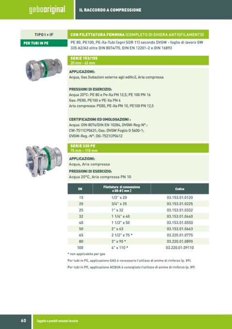 Aria compressa: PE80, PE-Xa PN 10, PE100 PN 12,5