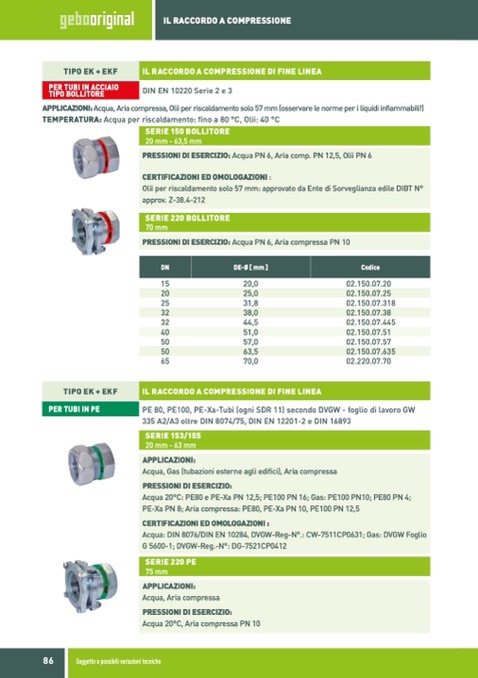 Acqua: DIN 8076/DIN EN 10284, DVGW-Reg-N°.: CW-7511CP0631; Gas: DVGW Foglio