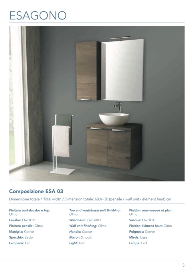 Dimensione totale / Total width / Dimension totale: 60,4+30 (pensile / wall unit / élément haut) cm