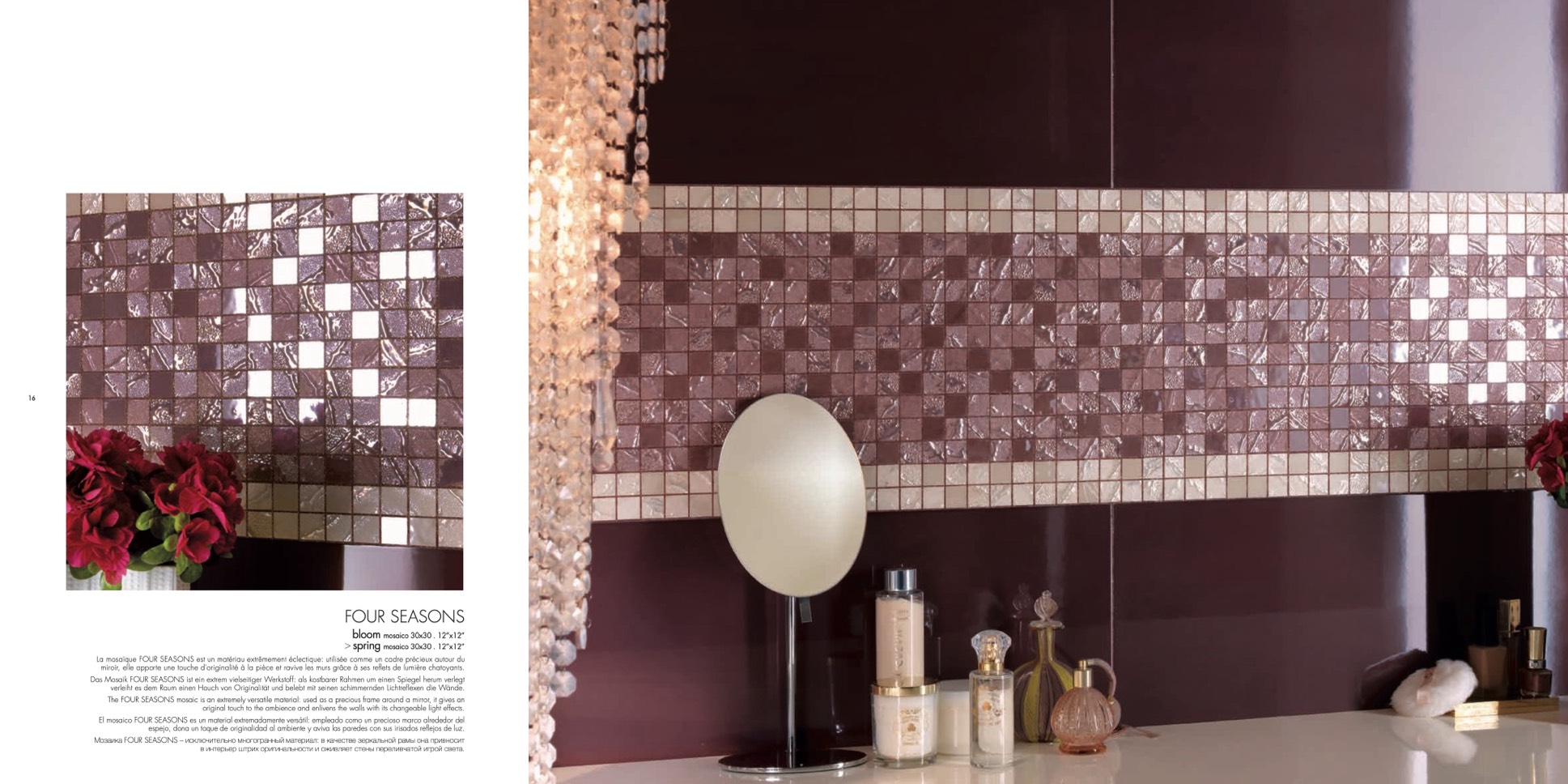 La mosaïque FOUR SEASONS est un matériau extrêmement éclectique: utilisée comme un cadre précieux autour du