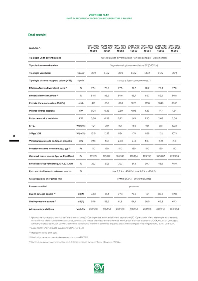 misurati in condizioni di riferimento asciutte, con flusso di massa bilanciato e una differenza termica dell’aria interna/esterna di 20K, escluso il guadagno
