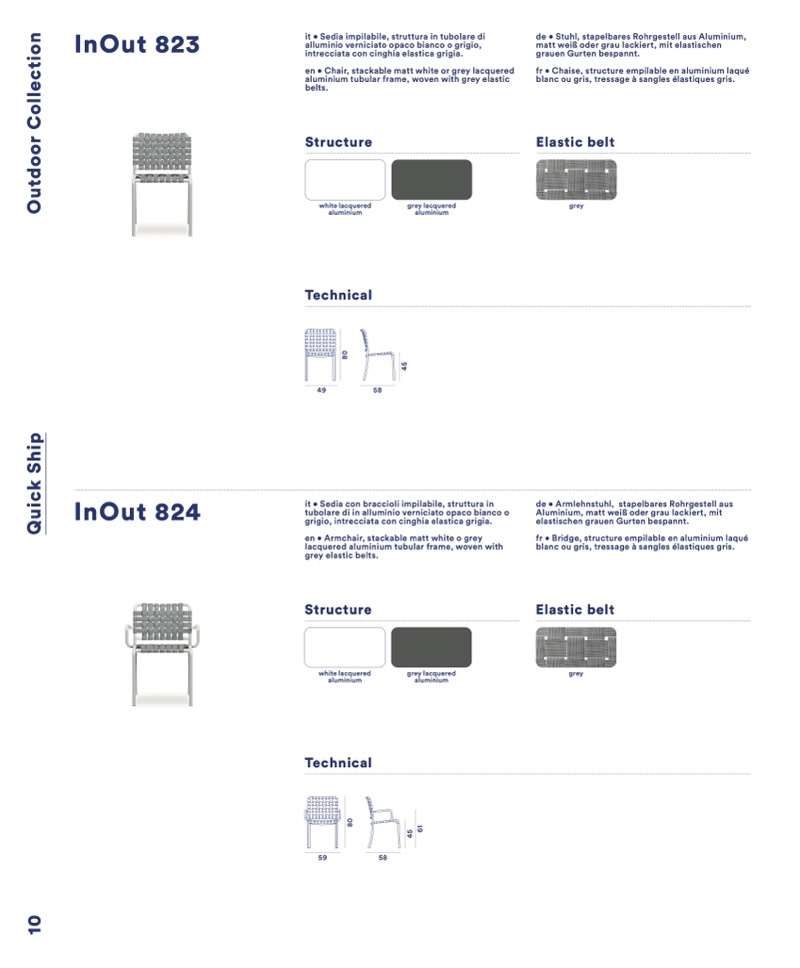 en • Chair, stackable matt white or grey lacquered
