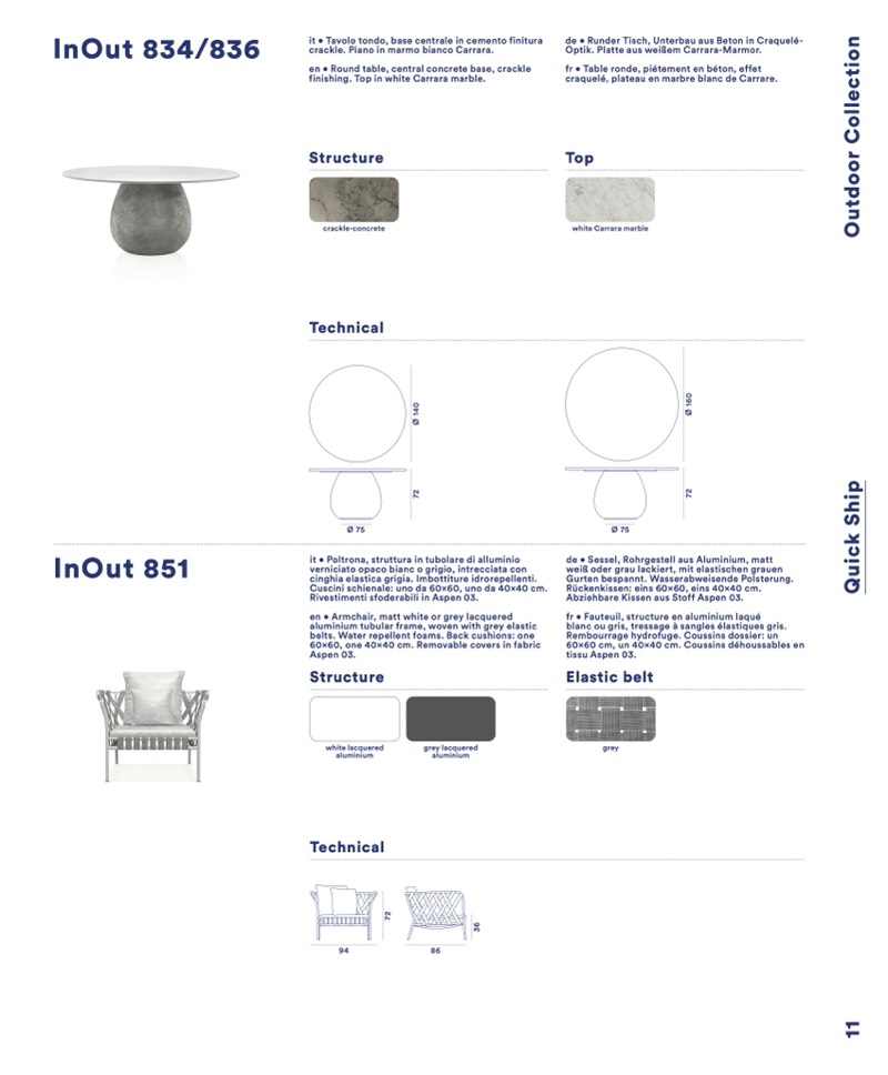it • Tavolo tondo, base centrale in cemento finitura