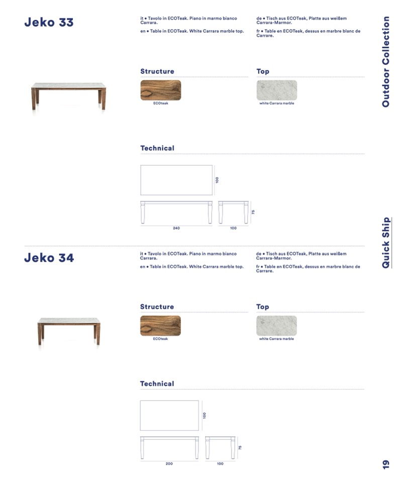 it • Tavolo in ECOTeak. Piano in marmo bianco