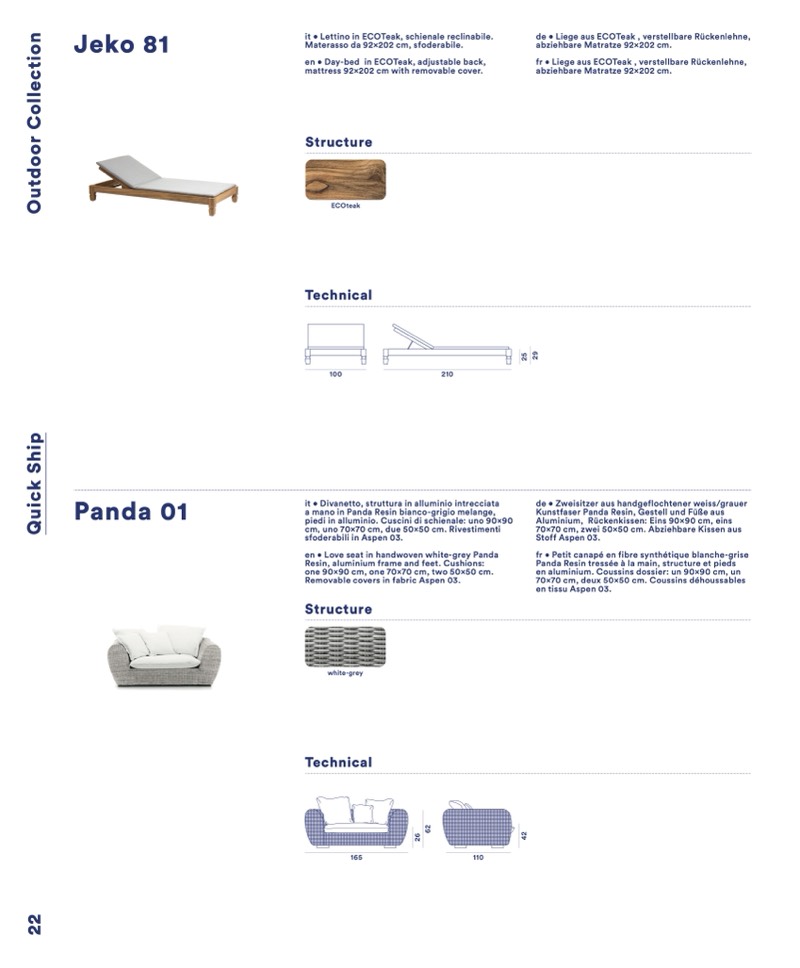 piedi in alluminio. Cuscini di schienale: uno 90x90