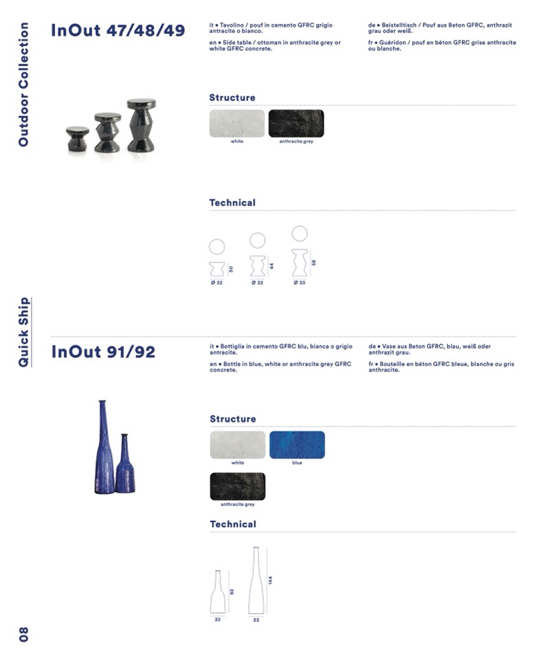 fr • Bouteille en béton GFRC bleue, blanche ou gris