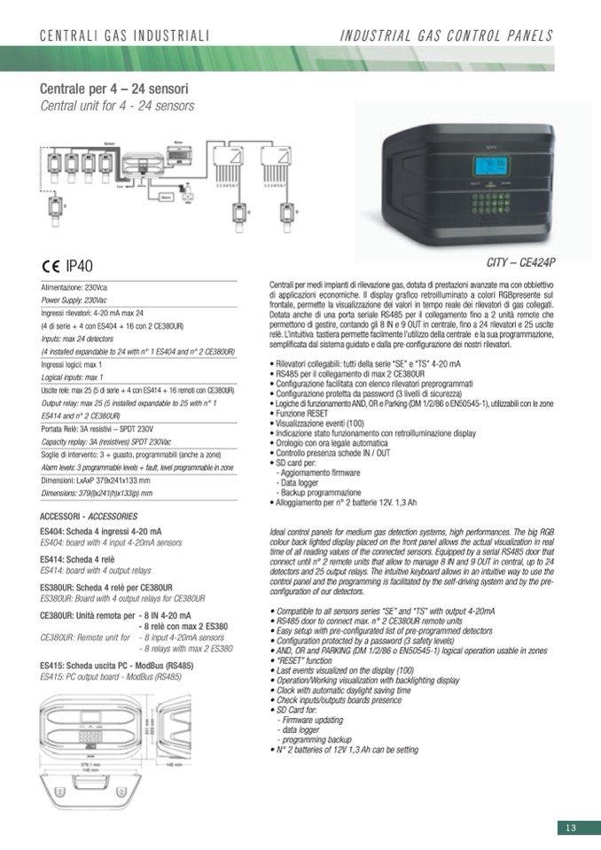 (4 installed expandable to 24 with n° 1 ES404 and n° 2 CE380UR)