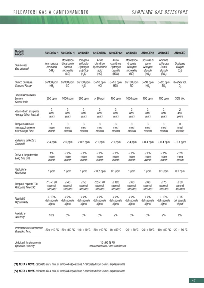 (*1) NOTA / NOTE: calcolato da 5 min. di tempo d’esposizione / calculated from 5 min. exposure time