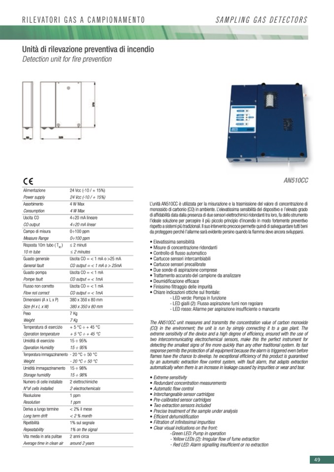 monossido di carbonio (CO) in ambiente. L’elevatissima sensibilità del dispositivo e l’elevato grado