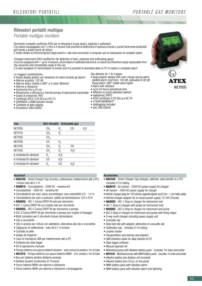 • NA010G - Smart Charger Cap (ricarica, calibrazione, trasferimento dati a PC)
