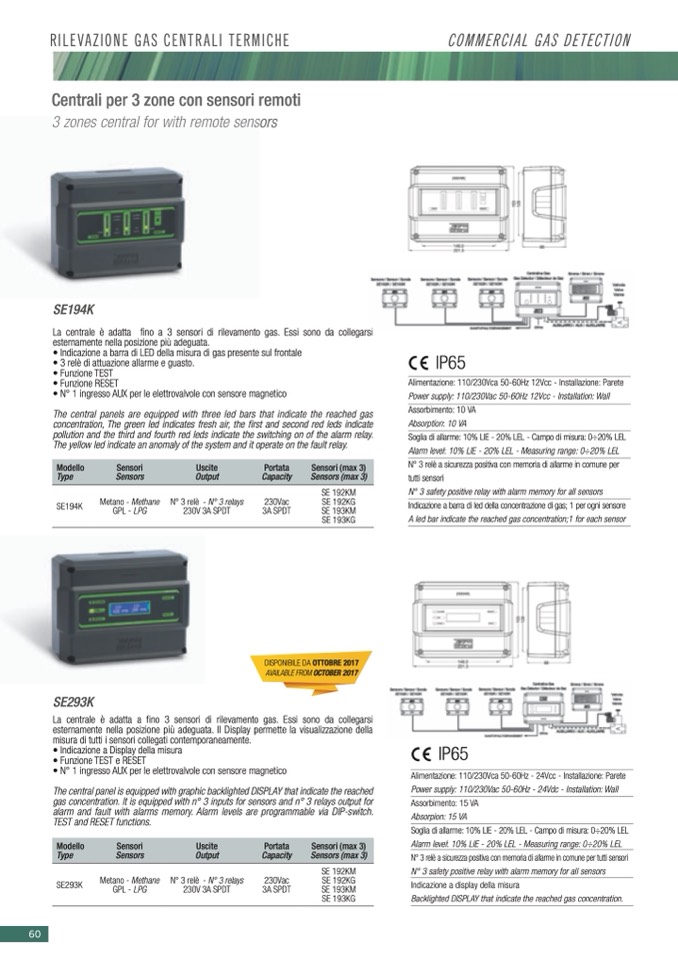 gas concentration. It is equipped with n° 3 inputs for sensors and n° 3 relays output for