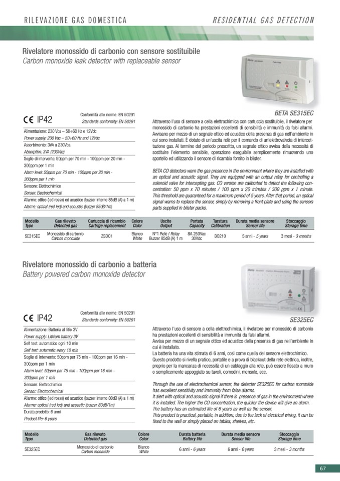 BETA CO detectors warn the gas presence in the environment where they are installed with