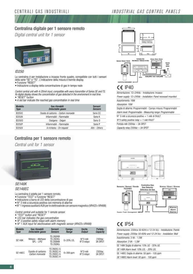 Power supply: 230Vac 50-60Hz and 12-24 Vcc - Installation: Wall