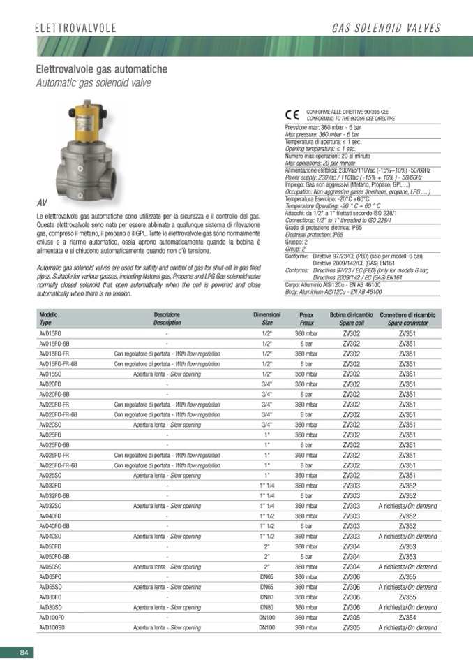 gas, compreso il metano, il propano e il GPL. Tutte le elettrovalvole gas sono normalmente