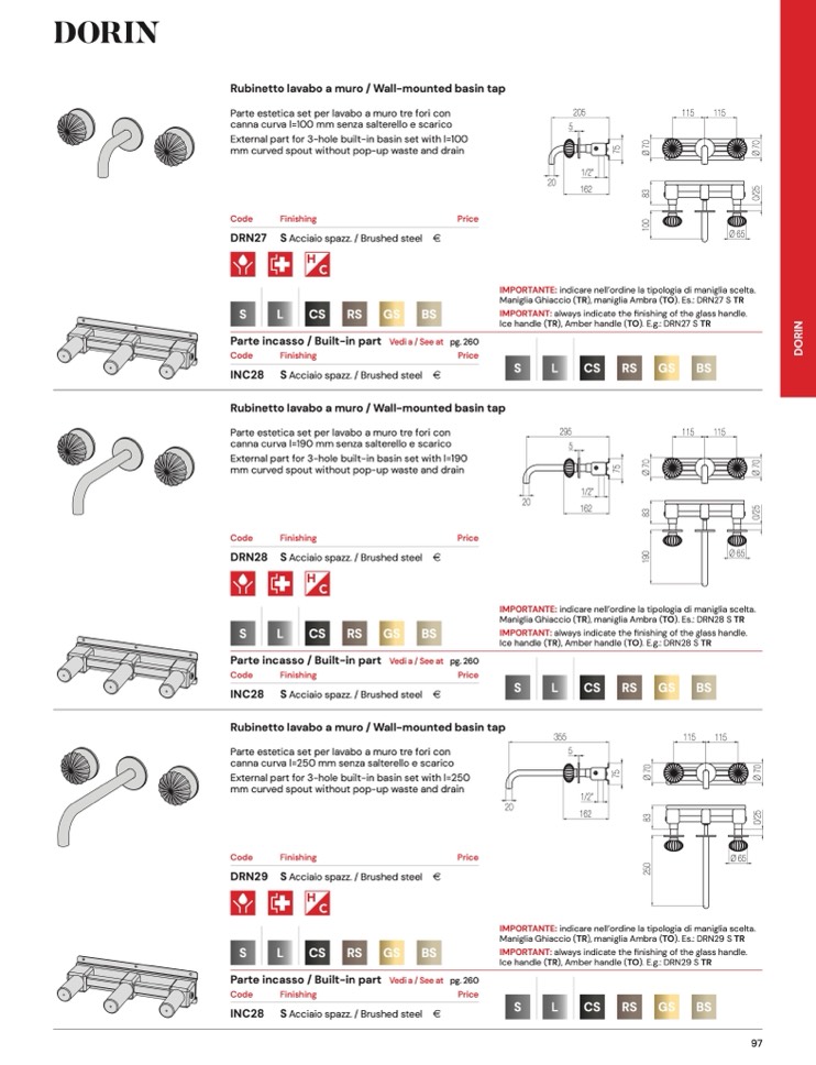 IMPORTANT: always indicate the finishing of the glass handle.