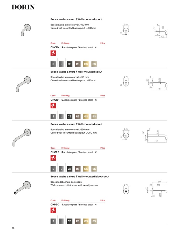 Bocca lavabo a muro / Wall-mounted bidet spout