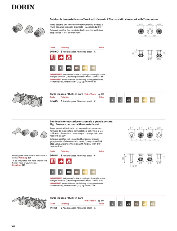 Maniglia Ghiaccio (TR), maniglia Ambra (TO). Es.: DRN60 S TR