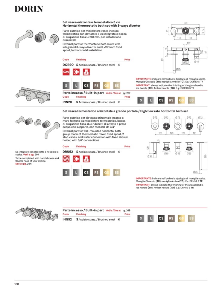 IMPORTANT: always indicate the finishing of the glass handle.