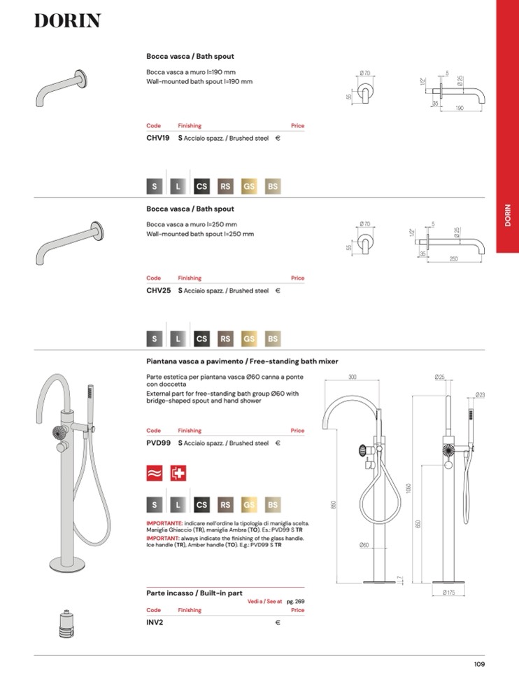 Ice handle (TR), Amber handle (TO). E.g.: PVD99 S TR