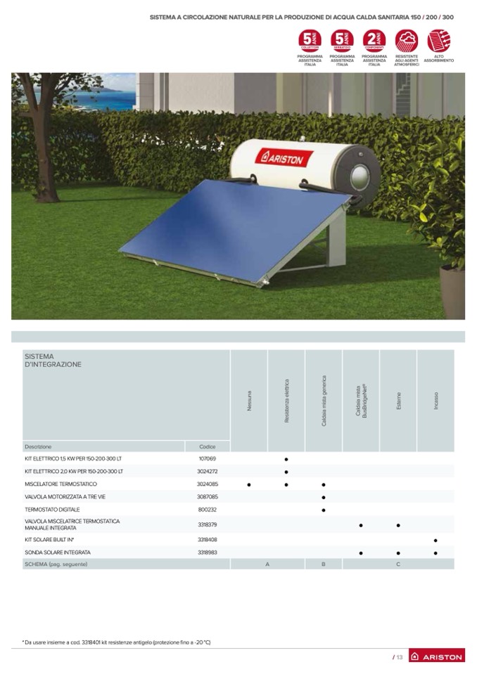 SISTEMA A CIRCOLAZIONE NATURALE PER LA PRODUZIONE DI ACQUA CALDA SANITARIA 150 / 200 / 300