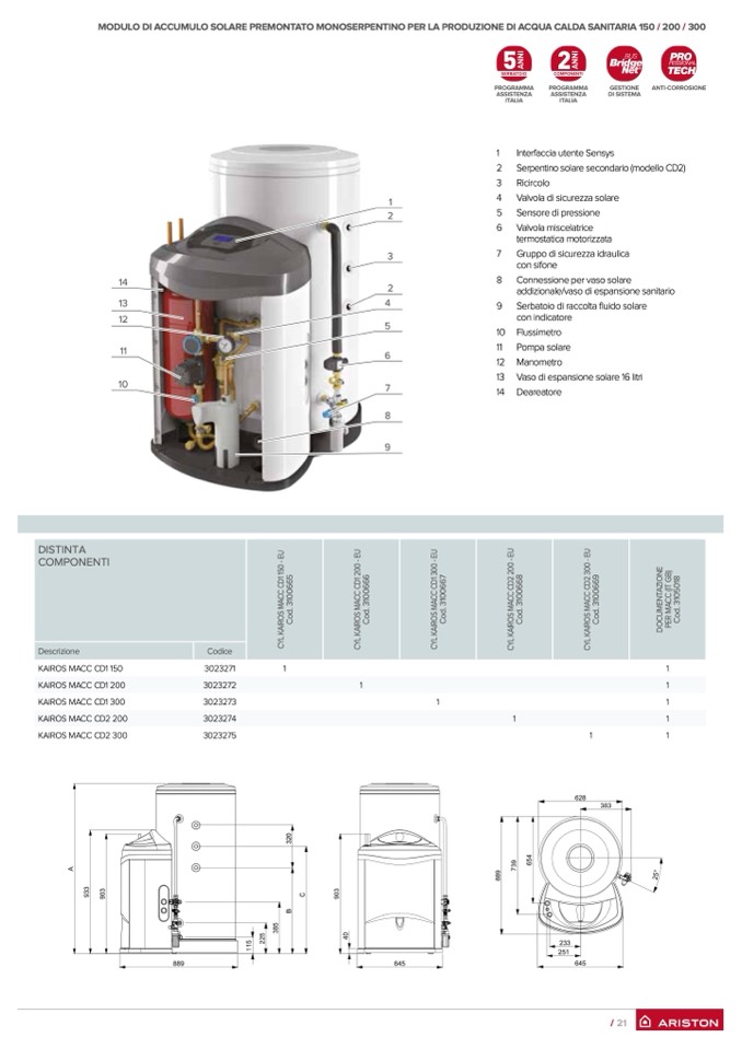 MODULO DI ACCUMULO SOLARE PREMONTATO MONOSERPENTINO PER LA PRODUZIONE DI ACQUA CALDA SANITARIA 150 / 200 / 300