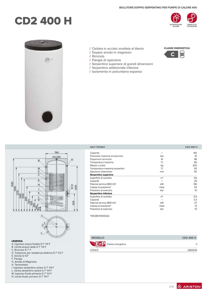 BOLLITORE DOPPIO SERPENTINO PER POMPE DI CALORE 400