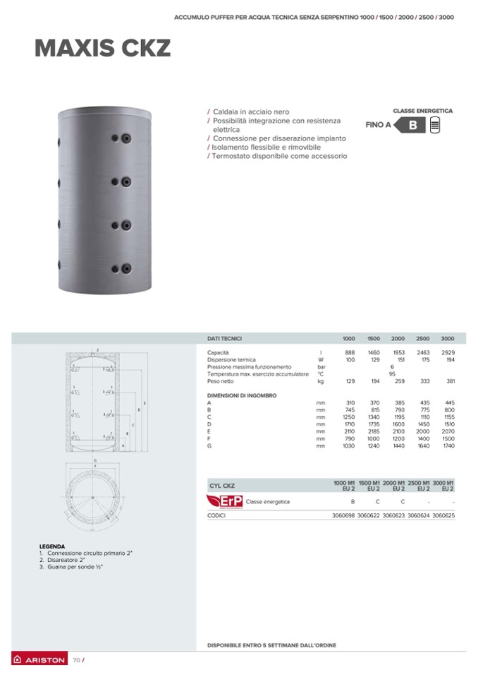 ACCUMULO PUFFER PER ACQUA TECNICA SENZA SERPENTINO 1000 / 1500 / 2000 / 2500 / 3000