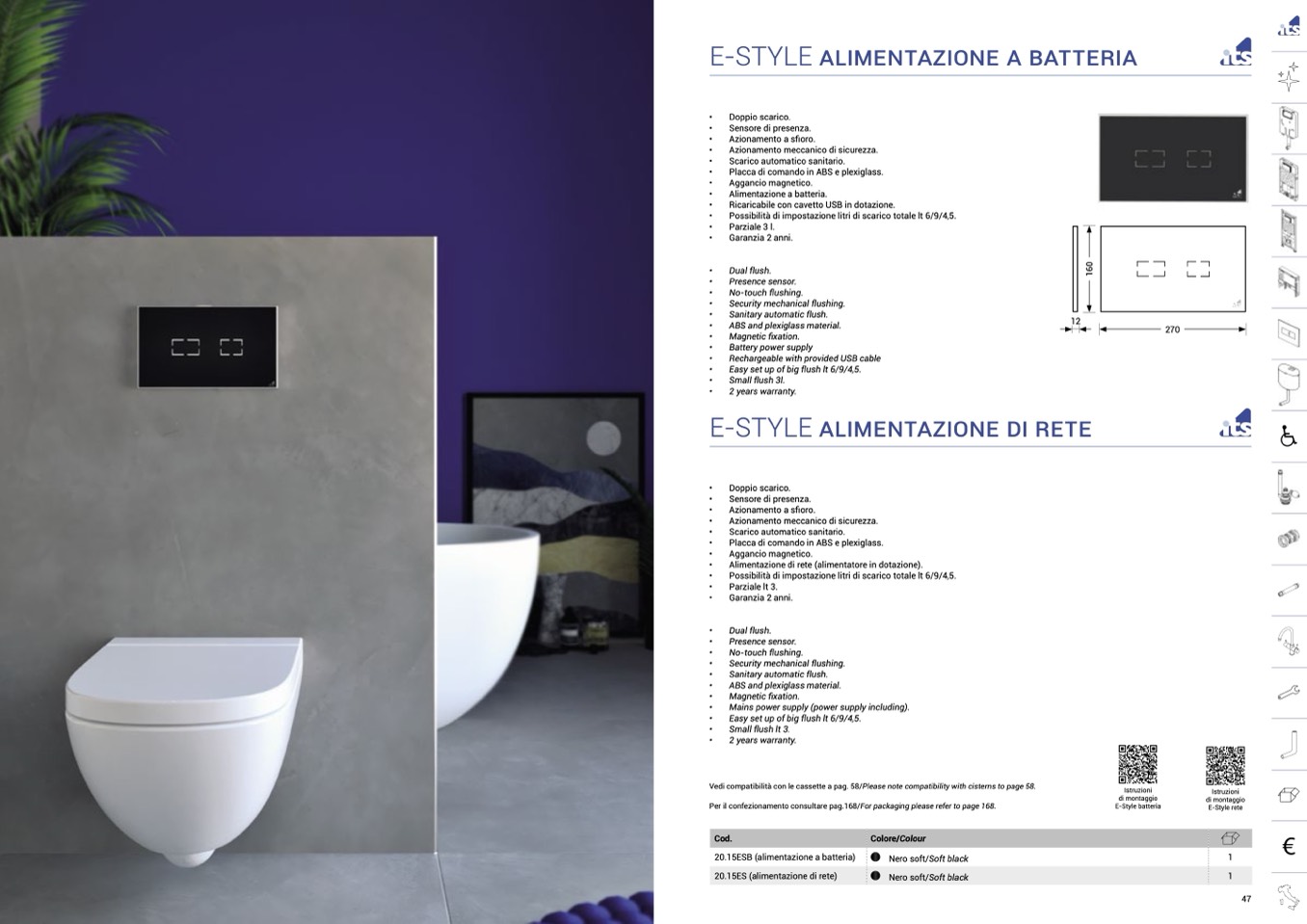 Vedi compatibilità con le cassette a pag. 58/Please note compatibility with cisterns to page 58.