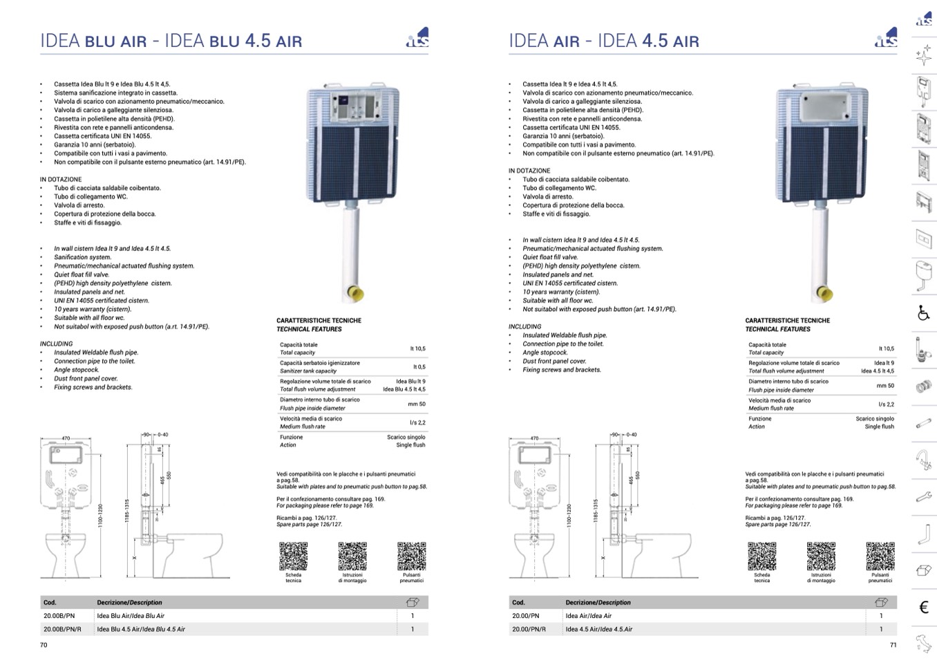 In wall cistern Idea lt 9 and Idea 4.5 lt 4.5.