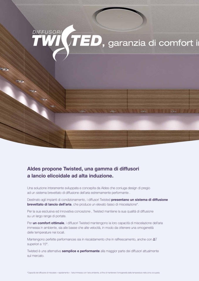 Destinato agli impianti di condizionamento, i diffusori Twisted presentano un sistema di diffusione