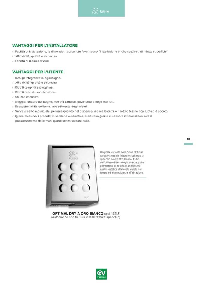 • Igiene massima; i prodotti, in versione automatica, si attivano grazie al sensore infrarossi con solo il