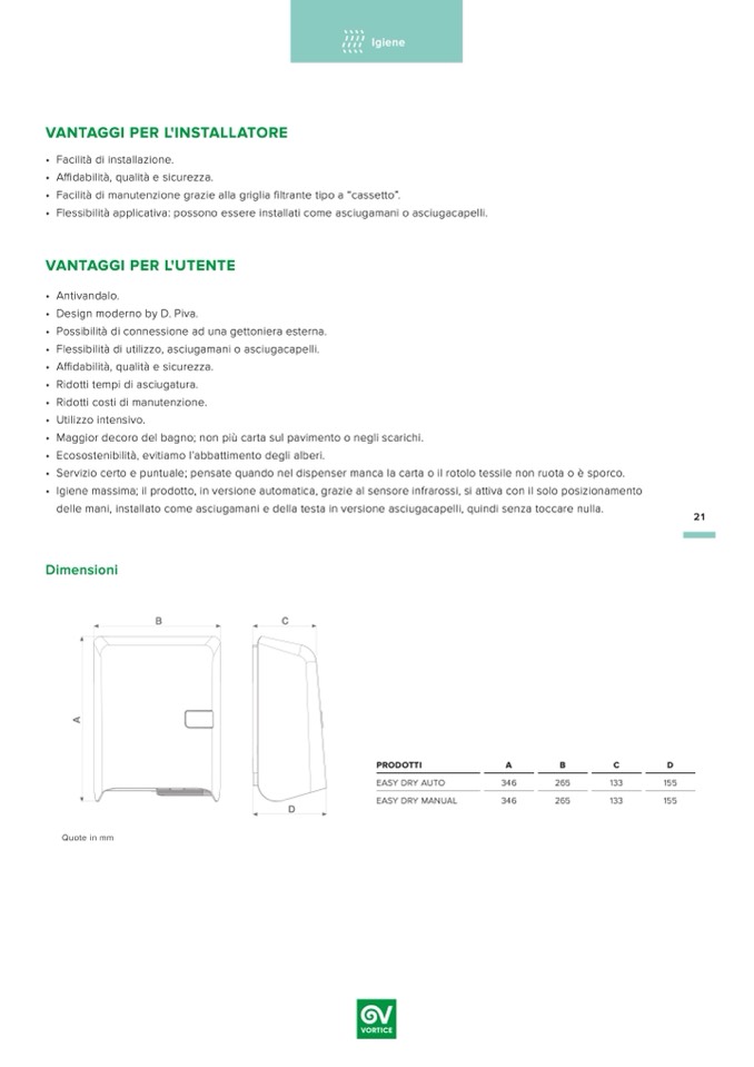 • Igiene massima; il prodotto, in versione automatica, grazie al sensore infrarossi, si attiva con il solo posizionamento