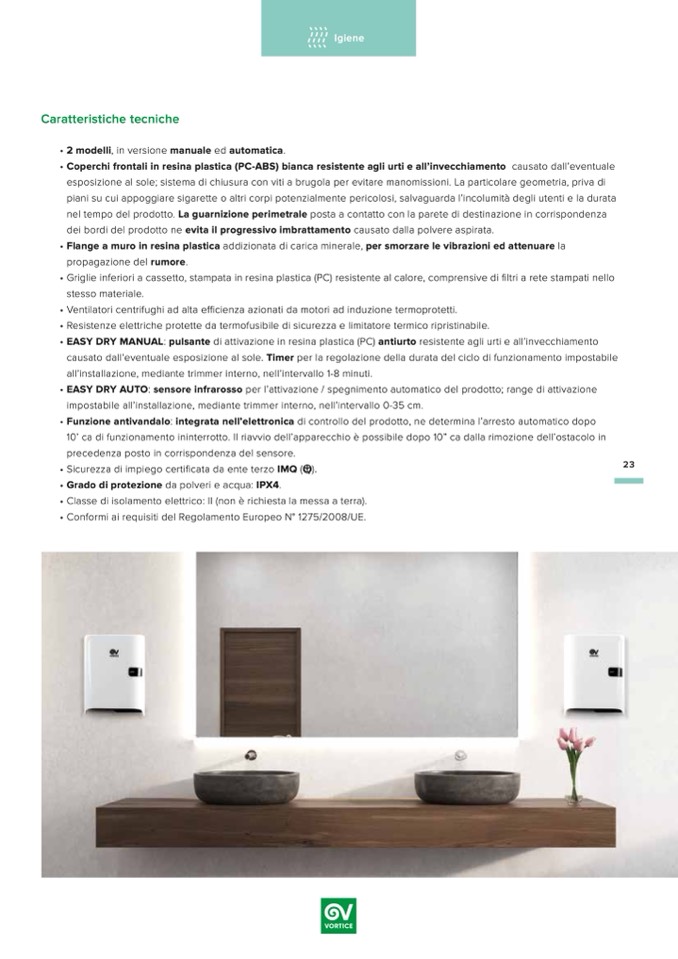 • EASY DRY AUTO: sensore infrarosso per l’attivazione / spegnimento automatico del prodotto; range di attivazione