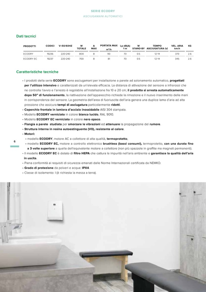 • I prodotti della serie ECODRY sono asciugamani per installazione a parete ad azionamento automatico, progettati